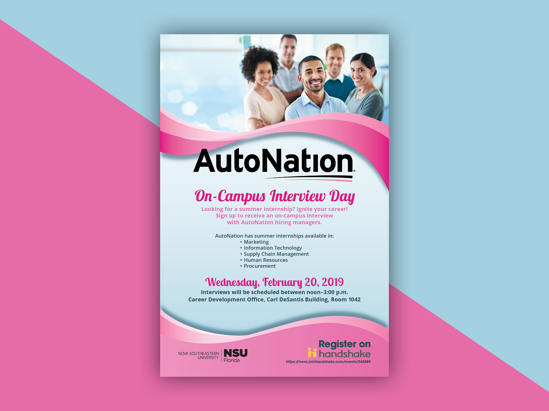 This was a very exciting project where I got the opportunity to create a flyer for AutoNation to promote their summer internships at NSU.